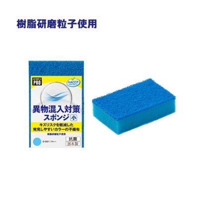 商品の特徴:樹脂研磨粒子入り不織布は耐摩耗性が高く、千切れても発見しやすいブルーなので異物混入対策に○。手になじむサイズ感。3色のカラー展開。