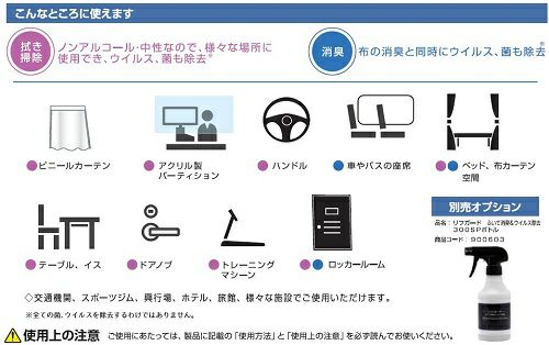 他の画像を見る リフガード ふいて消臭&ウイルス除去 ノンアルコール 4kg メーカー直送 個人宅配送不可 ケース対応 販売価格 ¥ 7,642 税込 カートに入れる お気に入りに登録する (0件)