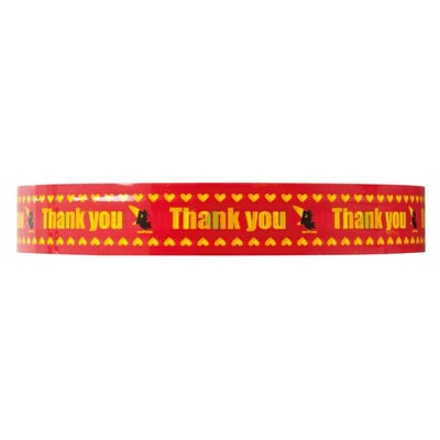 商品の特徴:15mm幅のデザインOPPテープです。「ありがとう」のキモチを伝える、目を惹くわかりやすいデザインがポイント!