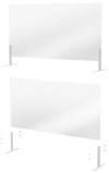 窓口業務やカウンターテーブル、打ち合わせ机などの対面テーブルで視界を妨げることなく飛沫によるコロナウィルスなどの感染を防ぎます。透明性が高く、見た目を損ないません。パネルの取り付け位置に応じて書類の受け渡しが可能です