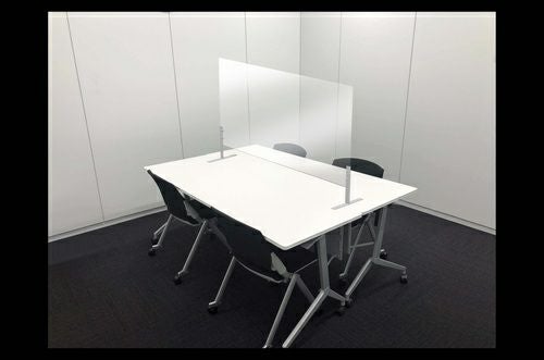個別カウンターやイートインスペースなどに最適な小型パーテーションです。クランプ方式によりズレづらくしっかり固定でき、透明パネルのため圧迫感なく視界の妨げになりません。パネルのみ取り外すことができ洗浄しやすい構造です。