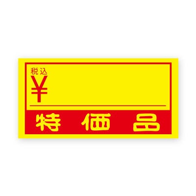 商品の特徴:昔ながらの特価品用ラベルです。空きスペースに価格を書き込んで使用します。黄色い紙に赤のデザインで視認性が良い配色です。●300枚入り(20枚×15シート)【印字内容】特価品/税込/¥