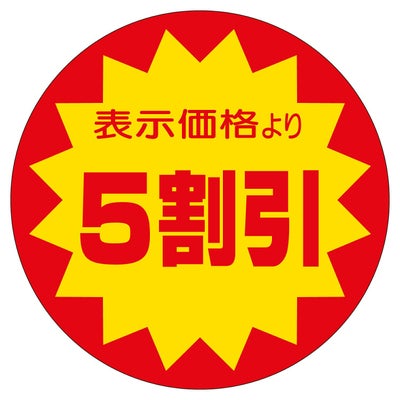 商品の特徴:食品スーパーや生鮮食料品店、総菜店や衣料品店など、小売店頭でご使用頂ける便利な販促用ラベルです。貼るだけで簡単に商品の表示やアイキャッチができます。割引表示タイプ。
