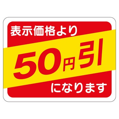 商品の特徴:食品スーパーや生鮮食料品店、総菜店や衣料品店など、小売店頭でご使用頂ける便利な販促用ラベルです。貼るだけで簡単に商品の表示やアイキャッチができます。割引表示タイプ。