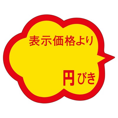 商品の特徴:食品スーパーや生鮮食料品店、総菜店や衣料品店など、小売店頭でご使用頂ける便利な販促用ラベルです。貼るだけで簡単に商品の表示やアイキャッチができます。割引表示タイプ。