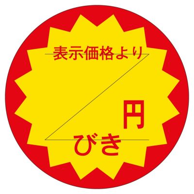 商品の特徴:食品スーパーや生鮮食料品店、総菜店や衣料品店など、小売店頭でご使用頂ける便利な販促用ラベルです。貼るだけで簡単に商品の表示やアイキャッチができます。割引表示タイプ。カット入り。