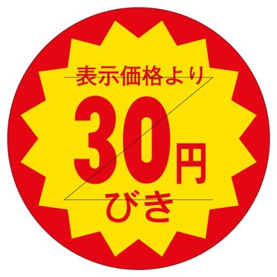 商品の特徴:食品スーパーや生鮮食料品店、総菜店や衣料品店など、小売店頭でご使用頂ける便利な販促用ラベルです。貼るだけで簡単に商品の表示やアイキャッチができます。割引表示タイプ。カット入り。