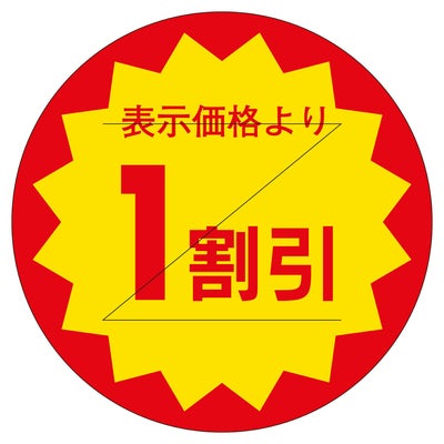 商品の特徴:食品スーパーや生鮮食料品店、総菜店や衣料品店など、小売店頭でご使用頂ける便利な販促用ラベルです。貼るだけで簡単に商品の表示やアイキャッチができます。割引表示タイプ。カット入り。