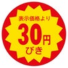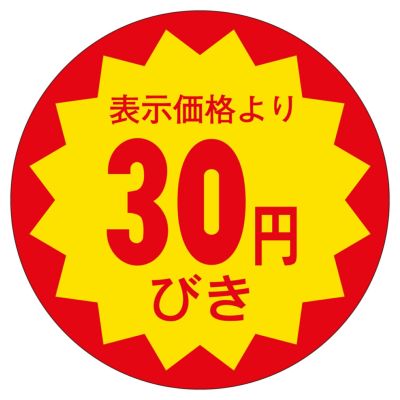 商品の特徴:食品スーパーや生鮮食料品店、総菜店や衣料品店など、小売店頭でご使用頂ける便利な販促用ラベルです。貼るだけで簡単に商品の表示やアイキャッチができます。割引表示タイプ。