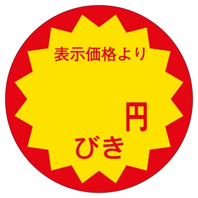 商品の特徴:食品スーパーや生鮮食料品店、総菜店や衣料品店など、小売店頭でご使用頂ける便利な販促用ラベルです。貼るだけで簡単に商品の表示やアイキャッチができます。割引表示タイプ。