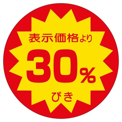 商品の特徴:食品スーパーや生鮮食料品店、総菜店や衣料品店など、小売店頭でご使用頂ける便利な販促用ラベルです。貼るだけで簡単に商品の表示やアイキャッチができます。割引表示タイプ。