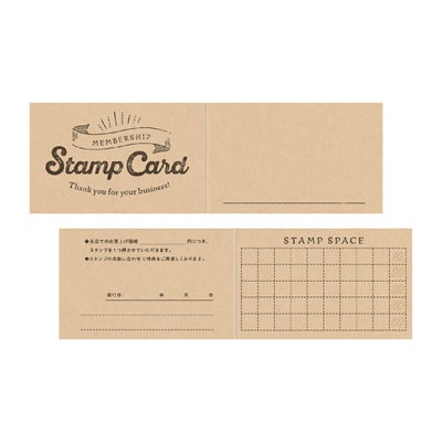商品の特徴:リピーター獲得に最適なスタンプカードです。飲食店やサロン、各種店舗で使いやすいデザインで、販促ツールとして幅広く活用できます。クラフトの厚手用紙で扱いやすく、集客力アップに貢献します。スタンプスペース50マス。