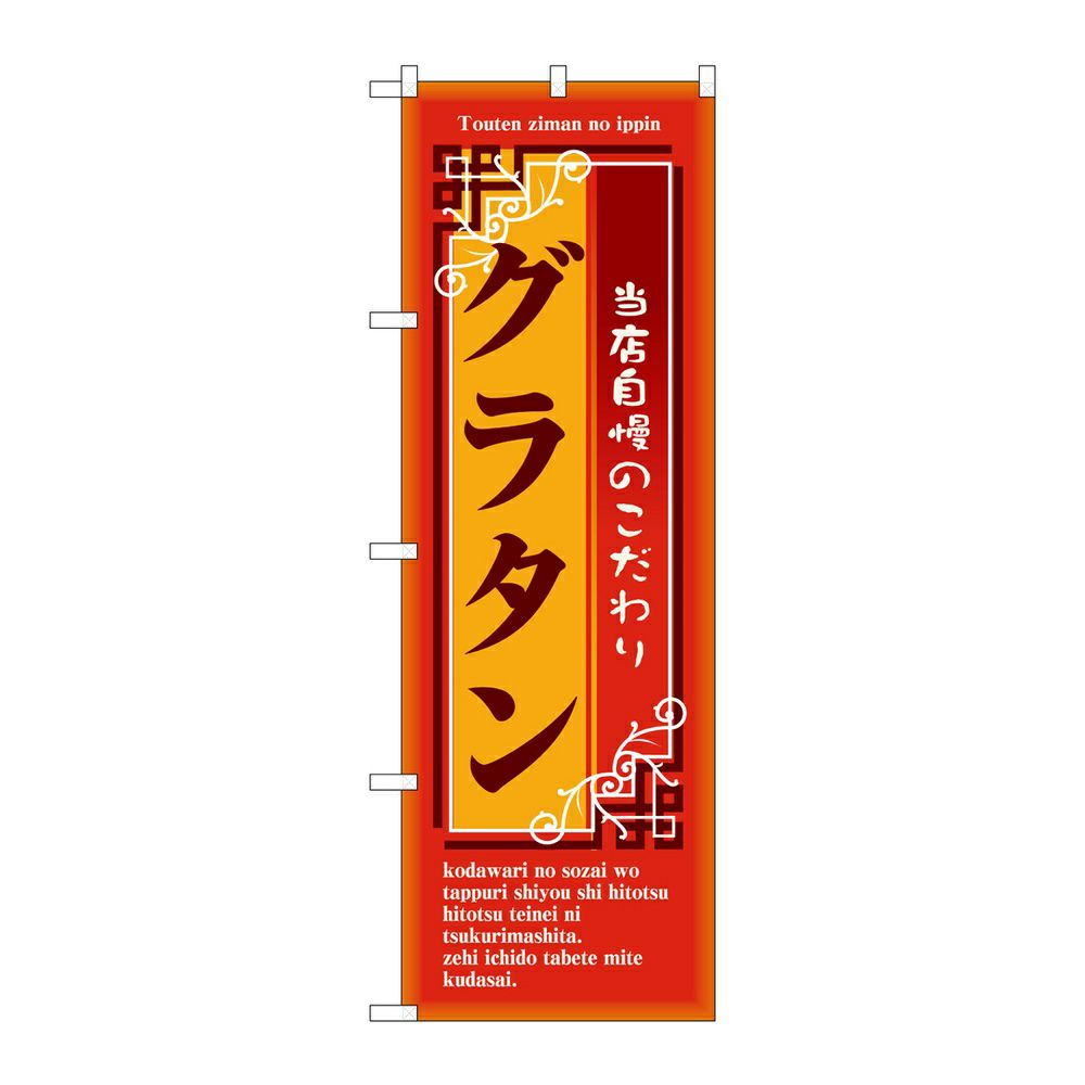 商品の特徴:ポリエステル生地の端を三方三巻してあるので、カットのみされたのぼり旗よりも耐久性に優れます。