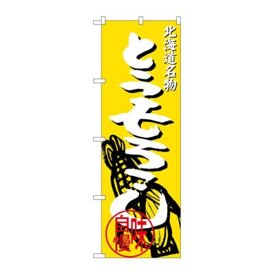 商品の特徴:ポリエステル生地の端を三方三巻してあるので、カットのみされたのぼり旗よりも耐久性に優れます。