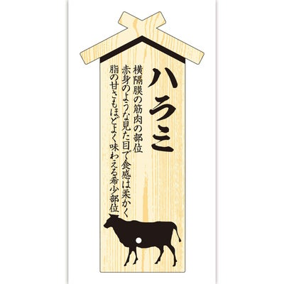商品の特徴:一頭から僅かしか取ることのできない希少部位。その価値と上質な味わいを言葉として1枚のプレートに詰め込みました。肉の部位の旨みを目で知ることができ、感じる美味しさが各段にアップします。プレートを入れることで高級感が増し、精肉コーナーが一層華やかになること間違いありません。他にも異なる字句のプレートシリーズをご用意しておりますので、ご使用シーンに合わせてお使いください。