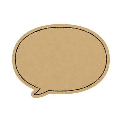 商品の特徴:黒ペンで書くだけでナチュラル感が演出できるクラフト素材のカードです。吹き出しの形は誰かが話しているような印象を与え、親しみやすさがあります。自分で切るのは面倒な形ですが好まれています。