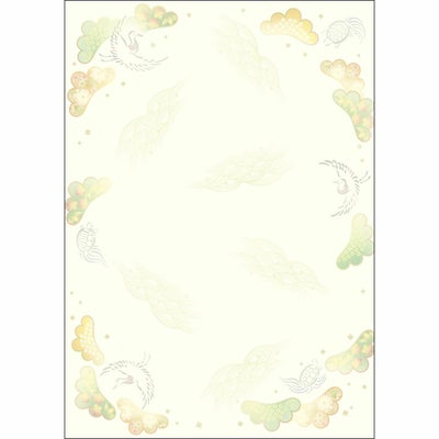 商品の特徴:落ち着きのある美しい「和柄用紙」●本物の和紙のような質感!しっかりした厚手の紙(0.18mm厚)にエンボス加工を施しています。本物の和紙のような手触りがお楽しみいただけます。手書き用にもご使用頂けます。●縁起のよいデザインです。〈松と鶴亀〉縁起の良い松の木と長寿を象徴する鶴亀柄
