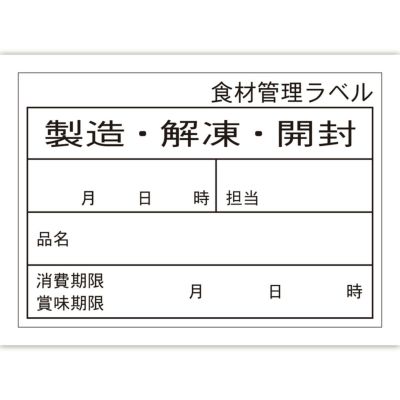 商品の特徴:食材のカンリ、開封、解凍後の保管はカンリシールを貼ることで誰が見ても分かりやすくなります。シールをはがす時にノリ残りをおさえた再剥離紙仕様。