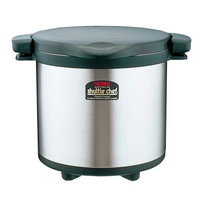 ●「シャトルシェフ」は、火からおろして料理をつくる「保温調理」というまったく新しいしくみの調理器です。調理鍋に材料を入れ、短時間煮立てたら保温容器に入れるだけ。あとは保温容器が、調理鍋ごと料理を高温に保ち、とろ火にかけたようにじっくり煮込みます。