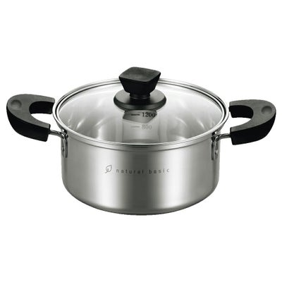 材質:本体:18-8ステンレス(0.5mm) 底部:アルミニウム(2.0mm)・18-0ステンレス(0.5mm) 蓋:強化ガラス ハンドル・ツマミ:フェノール樹脂