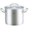 ●底厚の三層カプセル構造。熱伝導率の高いアルミ合金素材を保温性の高い18-10最高級ステンレスと18-0ステンレスでカプセル状に包み込んだフィスラー独自の底厚三層構造。