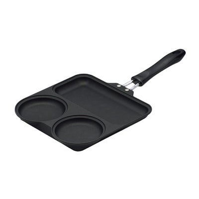 ●小さな丸型2つと大きめの焼き面が1つ、という組み合わせはパンケーキとおかず作りにピッタリ