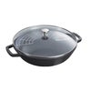 ●口径が広く、お料理が見えやすく、サーブしやすいです。蓋がガラスなので、軽く開け閉めに負担が無く、中の料理が見えます。ビュッフェに最適なストウブ。