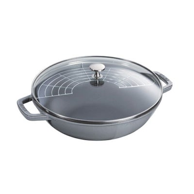 ●口径が広く、お料理が見えやすく、サーブしやすいです。蓋がガラスなので、軽く開け閉めに負担が無く、中の料理が見えます。ビュッフェに最適なストウブ。
