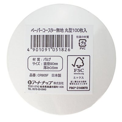 商品の特徴:FSC認証紙使用の白無地の丸型コースター