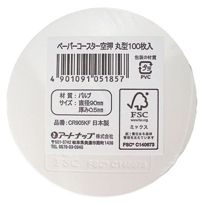 商品の特徴:FSC認証紙使用でFSCマークの空押し印刷が入った白無地のコースター