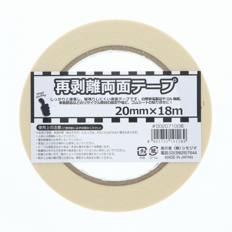 HEIKO 再剥離両面テープ 20mm×18m巻 7入