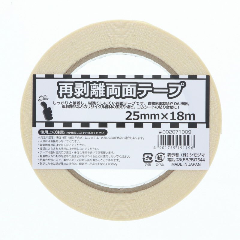 HEIKO 再剥離両面テープ 25mm×18m巻 5入