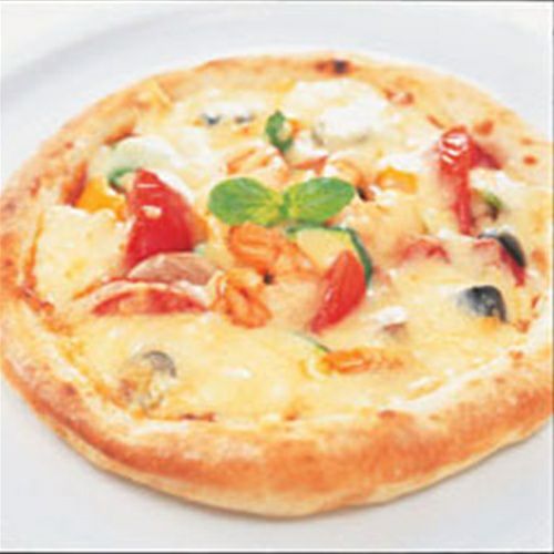 パリッともちもちのナポリ風クラストを使用。ゴルゴンゾーラ風味のチーズソースに、ゴーダ、ステッペン、レッドチェダー、グラダパダーノとタイプの違った5種のチーズをトッピング、チーズ好きにはたまらないピザ。