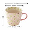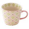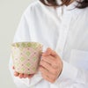 商品の特徴:手描き風の花柄がかわいいピンクと緑の陶器のマグカップです。箱に入れて納品いたしますので、そのまま雑貨として販売していただけます。お菓子などを入れるラッピングの器としてもおすすめです。