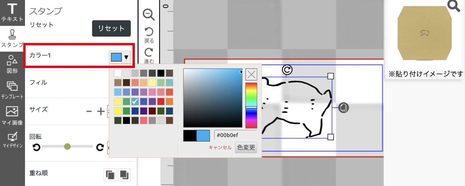 「戻る」をクリックすれば、デザインは元に戻ります。