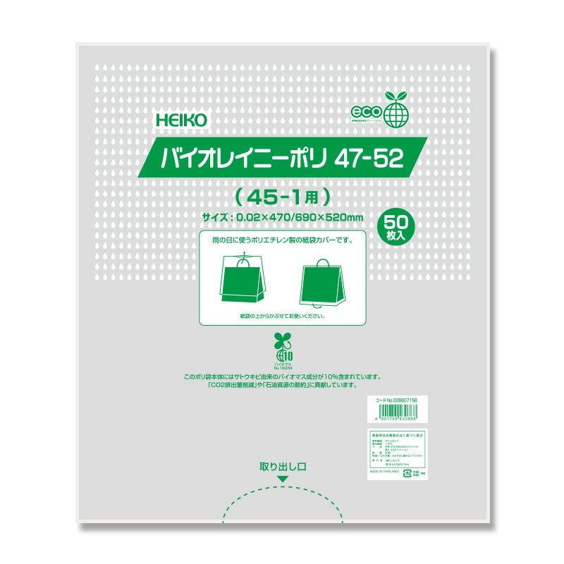 他の画像を見る 【欠品 次回入荷未定】HEIKO ポリ袋 バイオレイニーポリ 47-52 (45-1用) 500枚 メーカー直送 ケース対応 販売価格 ¥ 12,820 税込 在庫切れ 再入荷お知らせ お気に入りに登録する (0件)