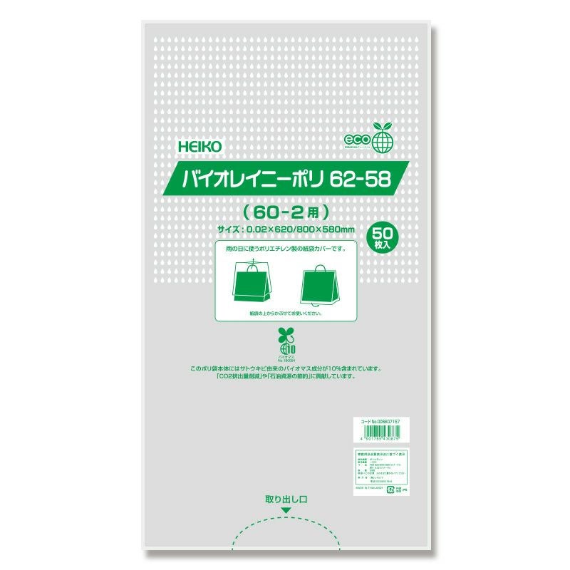 他の画像を見る 【欠品 次回入荷未定】HEIKO ポリ袋 バイオレイニーポリ 62-58 (60-2用) 500枚 メーカー直送 ケース対応 販売価格 ¥ 15,840 税込 在庫切れ 再入荷お知らせ お気に入りに登録する (0件)